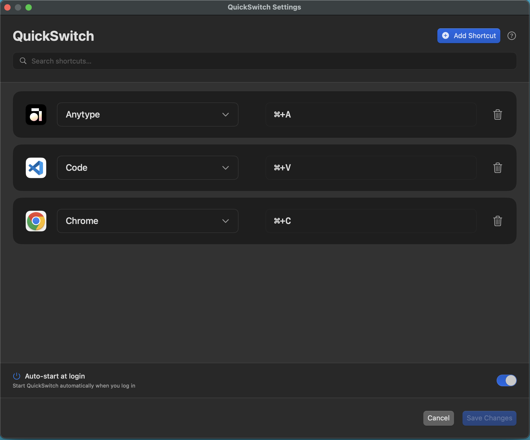 A simple menu bar app for macOS that lets you switch between apps instantly with custom shortcuts.